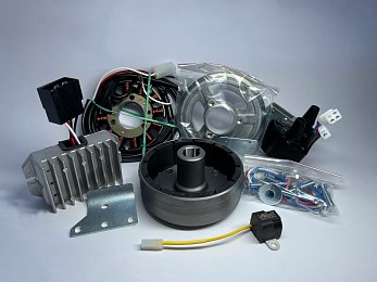 6V zdrojová a zapalovací souprava, pro dvouválcové, dvoutaktní, pravotočivé motory.
